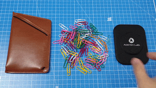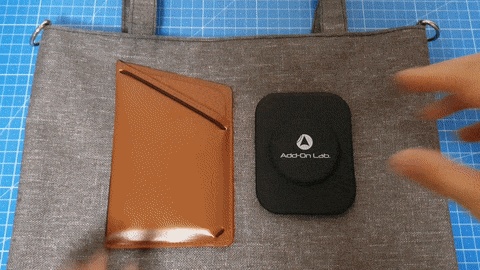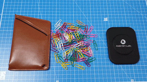 Add-On Lab.은 다양한 가방을 테스트하며 최적의 포켓 구조와 자력을 고민했습니다. 대부분의 가방에 사용되는 직물 또는 가죽의 두께는 1.5mm 이하였으며, 가방 내부 주머니의 소재는 두께 1mm 이하였습니다. 그리하여 Add-On Pocket 은 약 1.5mm 이하 두께의 소재에 부착 및 사용이 가능하도록 설계되었습니다. 그 이상의 두꺼운 소재로 만들어진 가방은 결합력이 약할수 있으므로 사용을 권장하지 않습니다. (두께를 가늠하는 손쉬운 방법으로 신용카드 2장 정도의 두께가 1.5mm 입니다)