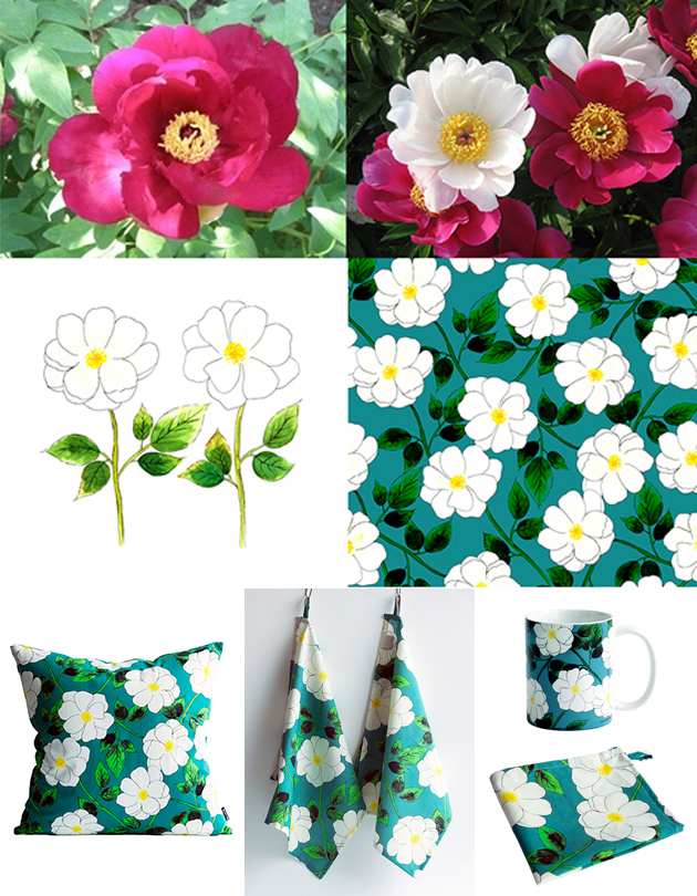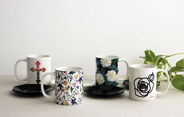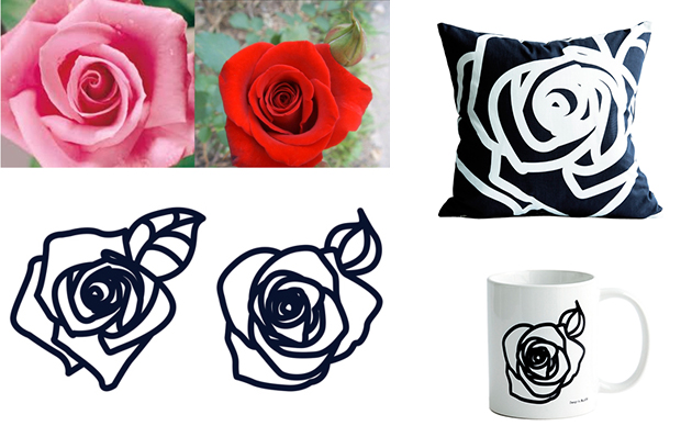 2016년 봄시즌 제품인 '그대 이름은 장미' 시리즈입니다. 굵은 선으로 간략하게 그린 장미로 쿠션과 머그컵, 주방수건에 응용하였습니다.