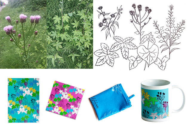 2016년 여름시즌 제품인 들꽃 시리즈입니다. 집에 가는길에 자주 보았던 꽃들과 잎들을 색연필로 그려 응용한 제품들 입니다.