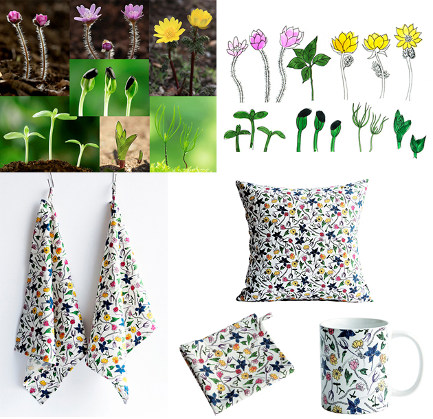 2016년 봄시즌 제품인 '새싹들의 향연'시리즈입니다. 봄에 많이 피는 복수초, 노루귀 등의 새싹을 스케치하여 수채화로 채색한 후 검은펜으로 테두리를 마무리한 제품입니다.