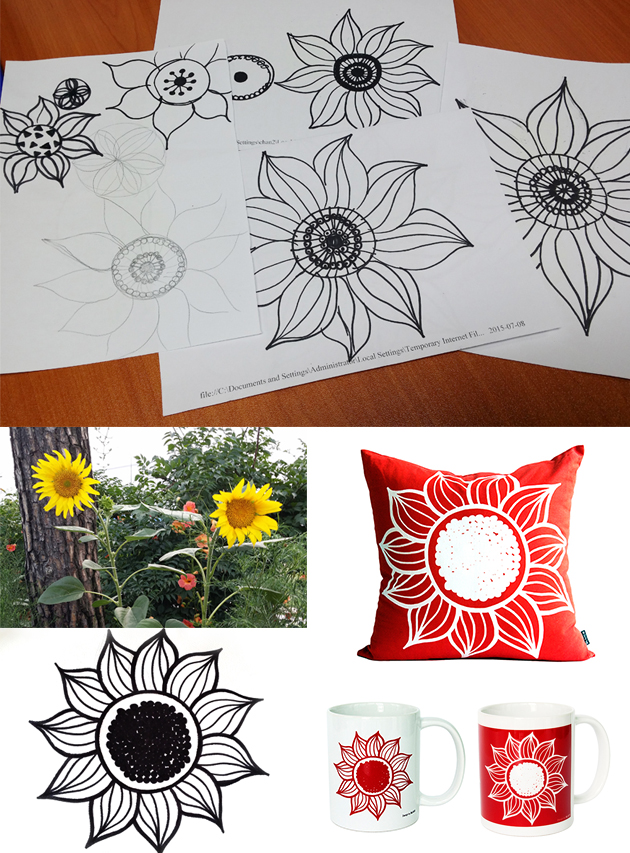 2015년 여름시즌 '태양을 닮은 해바라기' 시리즈입니다. 여름에 흔히 볼 수 있는 해바라기를 사진을 찍어 여러 스케치를 거쳐 블루케만의 독특한 손 그림이 나왔습니다. 손으로 그려 선 굵기가 다르지만 자연스럽고 친근한 멋이 있습니다.