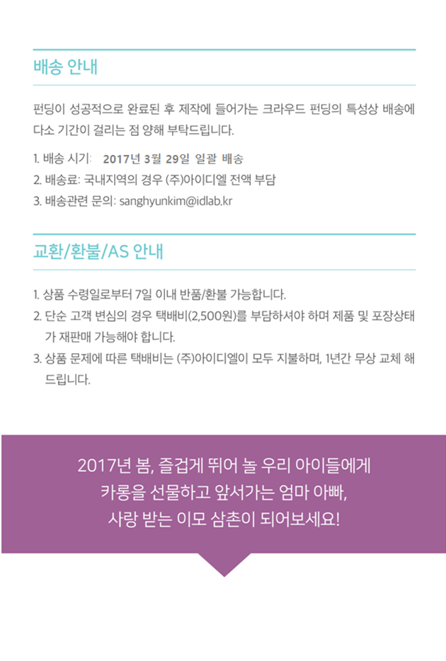 아이가 불편함 없이 카롱과 함께 할 수 있도록 가볍고 예쁘게 제작되었습니다!