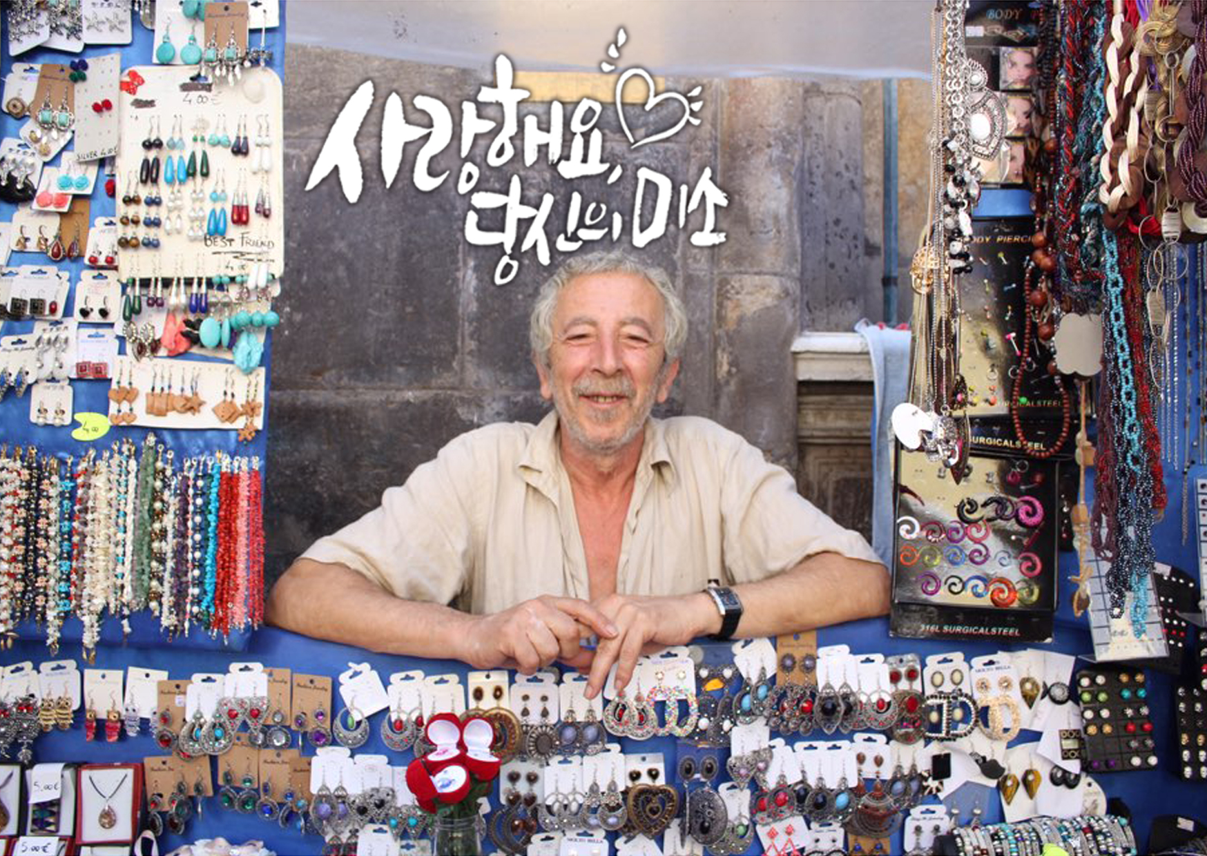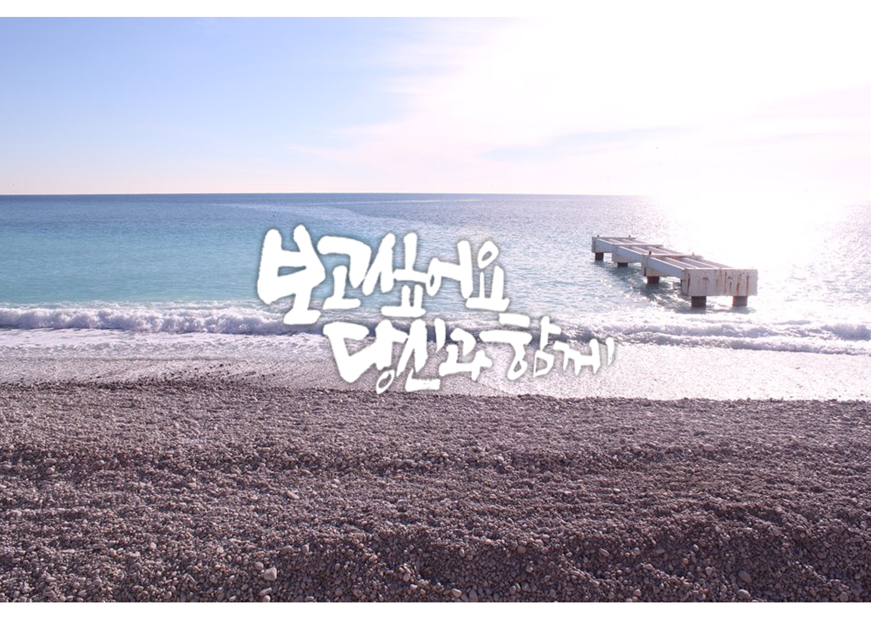 푸른 바다와 미소짓는 할아버지의 모습위에 예쁜 캘리그라피가 쓰여집니다.