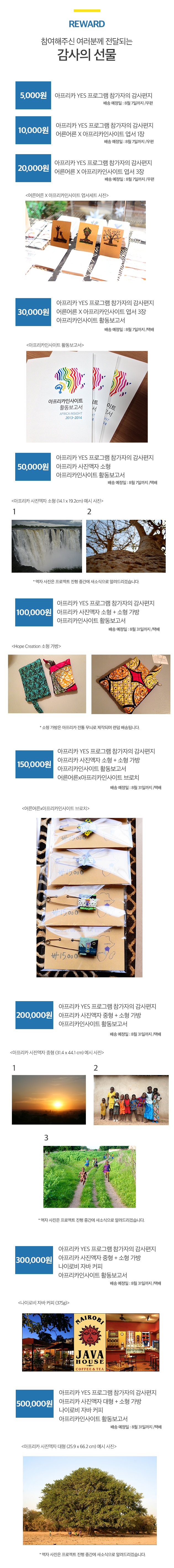 7월 31일까지 진행되는 크라우드 펀딩 100% 달성시 케냐의 청년 혁신가들이 꿈을 펼칠 수 있는 기회가 주어집니다. 모금된 금액은 아프리카 YES 프로젝트의 운영을 위해 100% 사용됩니다. (교육과 훈련, 최우수 아이디어 선정 및 사업화를 위한 초기 비용 지원) 니키를 비롯한 아프리카의 10명 청년을 양성하고 그들의 사업이 지속될 수 있도록 여러분의 도움이 필요합니다.