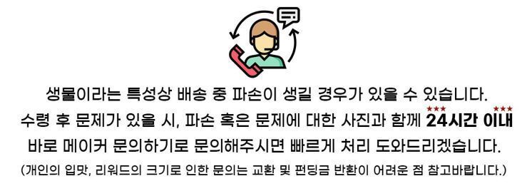 혹시 수령 후 배송으로 인해 과일의 상태가 좋지 않을 경우 24시간 내 메이커 문의하기로 문의해주시면 답변드리겠습니다. 24시간 이후 문의 시 교환, 펀딩금반환 등이 어렵습니다.