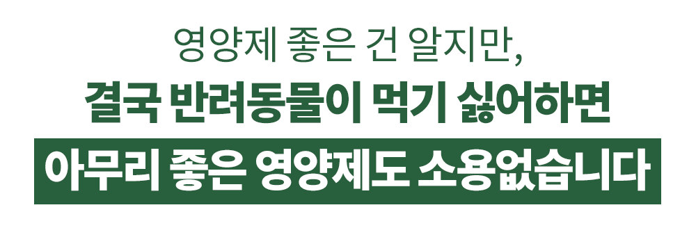 입맛이 까다로운 20여 종의 강아지에게 기호성 테스트를 반복 진행하면서, 가장 좋아하는 맛과 향이 날 수 있도록 만들었습니다.