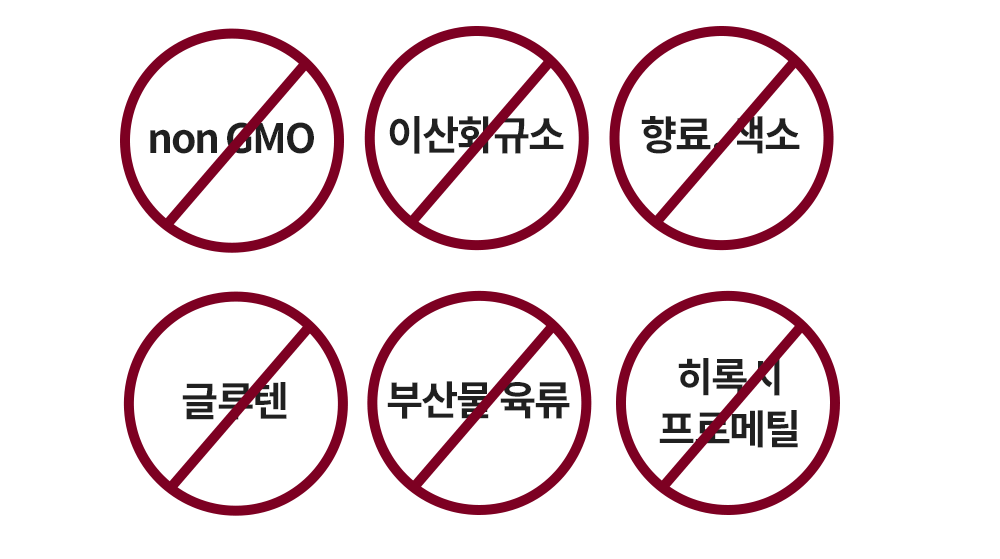 nonGMO 원료, 이산화규소, 향료, 색소, 글루텐, 부산물육류, 히록시프로메틸 원료를 사용하지않고 안전하게 만들었습니다