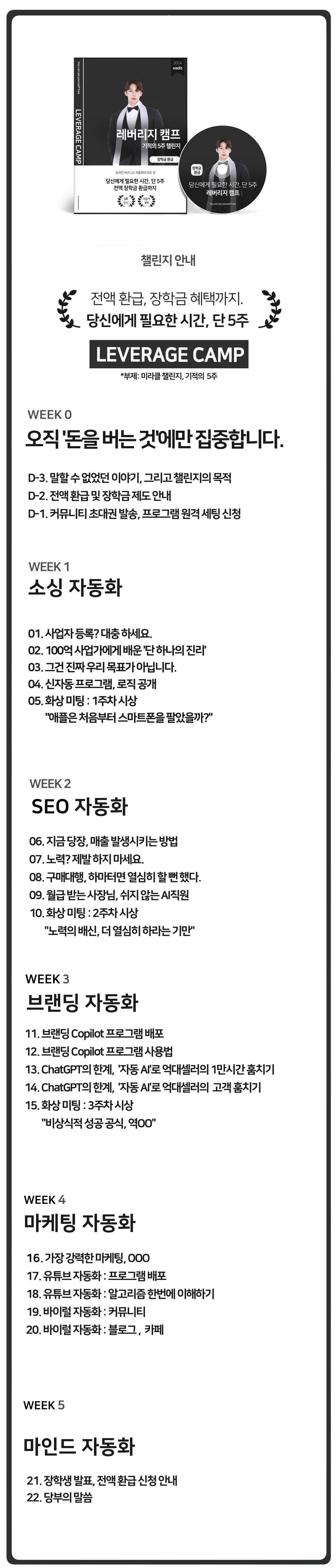 정말... 실행하지 않고서는 베기지 못한 강의, 프로그램, 챌린지(레버리지캠프)를 준비했습니다.