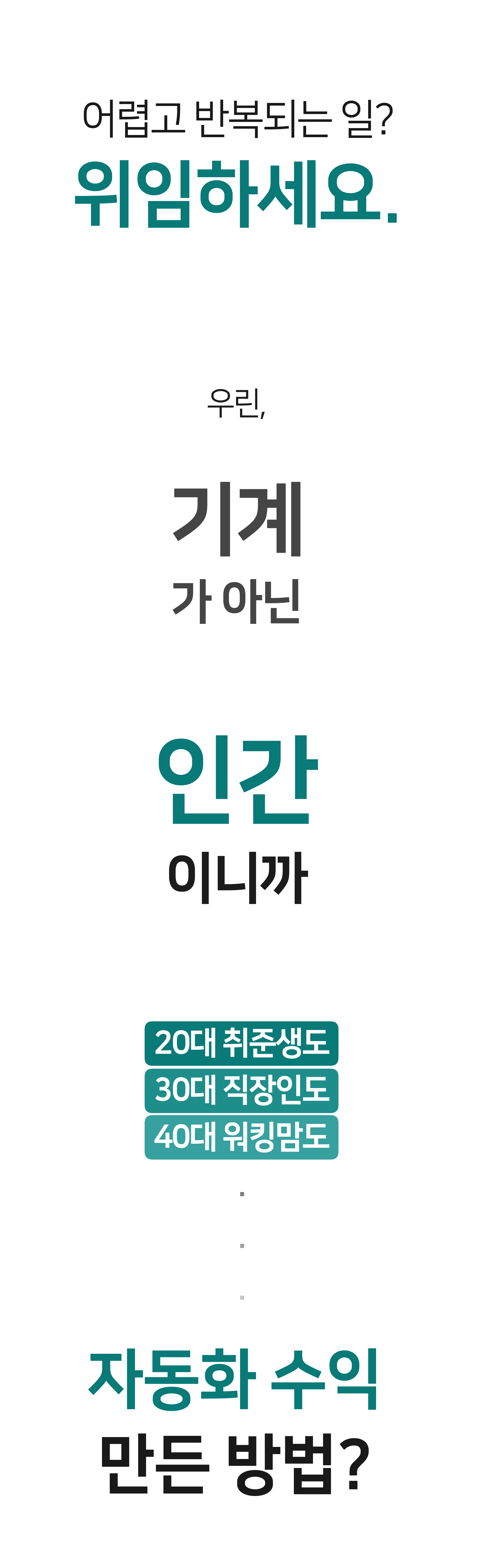 저와 같은, 평범한 삶에서 느낀 배신감과 절박함을 가진 분들께 손에 쥐어드려