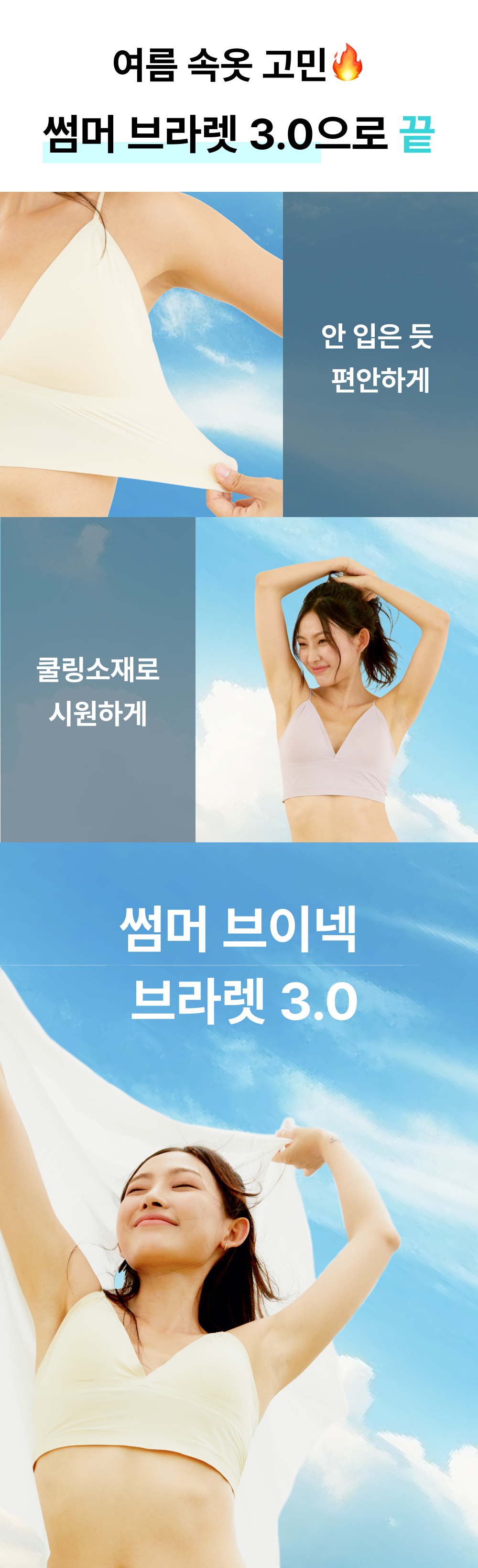 감사하게도 많은 서포터분들께서 ‘썸머 브이넥 브라렛 3.0’을 많이 사랑해주시고 재펀딩 문의를 주셔서  하여 앵콜로 와디즈에 돌아왔습니다!