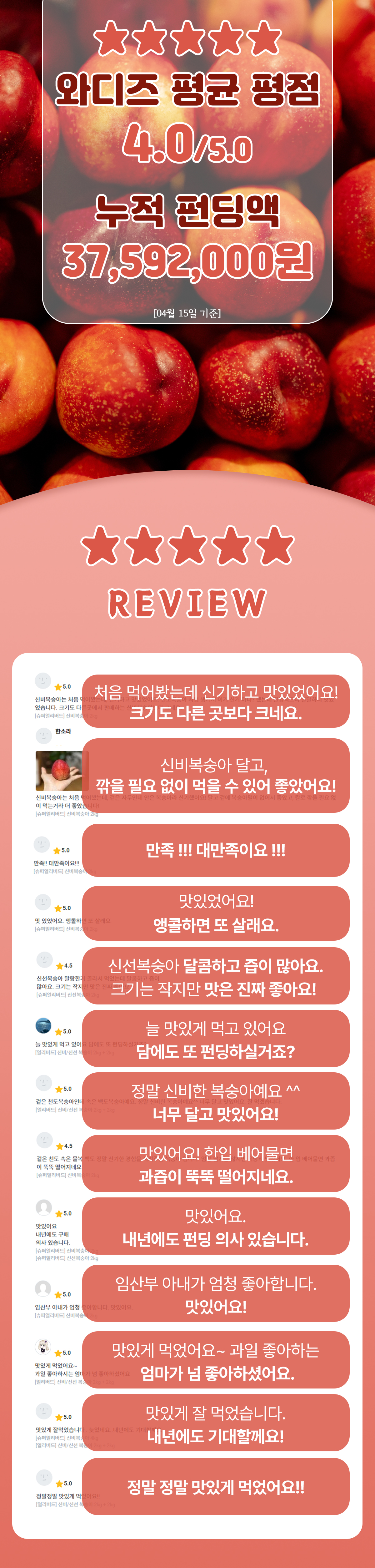 저희 농장의 신비,신선복숭아는 오직 와디즈에서 단독 유통됩니다.