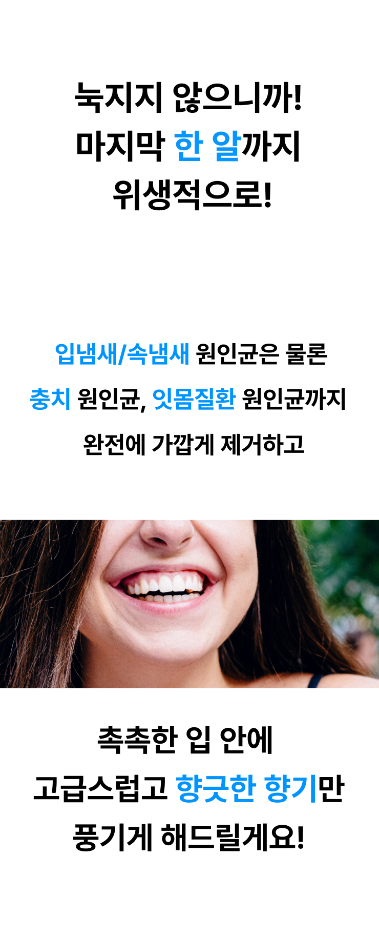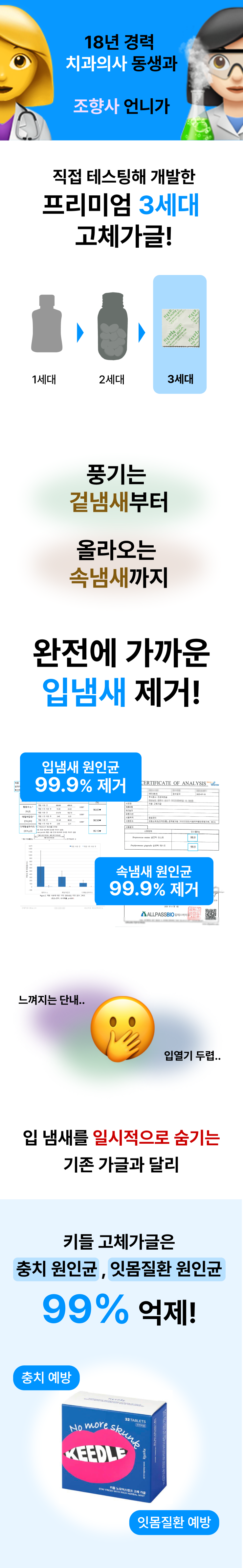 18年の経験を持つ歯科医の弟と調香師の姉が開発したプレミアム第3世代マウスウォッシュ!好みに合わせて選べる時代へ。パキッと噛んで吐き出すだけで、3秒で歯磨き以上の爽快感!