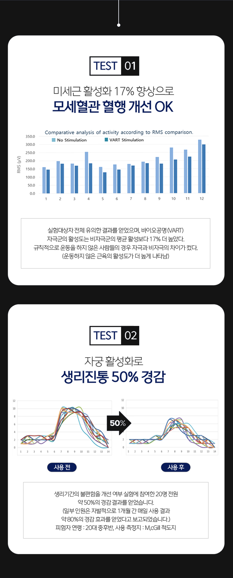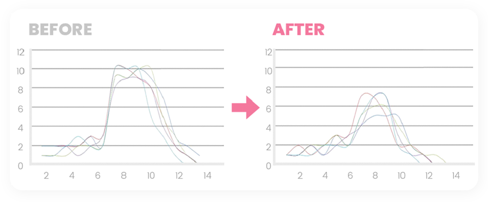 실제 임상 실험을 통하여, 사용 이후 그날의 불편함이 감소하는 것을 확인할 수 있습니다.