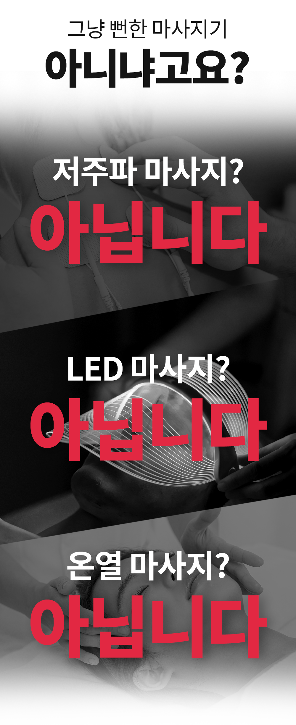 근육층까지 자극이 닿지 않는 마사지 기기들과는 차원이 다릅니다
