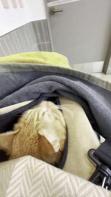 이동장 안에 깔아둔 매트 위에 스프레이 한 번 뿌리고 고양이를 가방에 넣습니다. 그 이후에 이동장 위에 덮는 천에 두 번 정도 넓게 뿌리고 뿌린 방향을 바닥 쪽으로 향해서 이동장 위로 덮어줍니다.