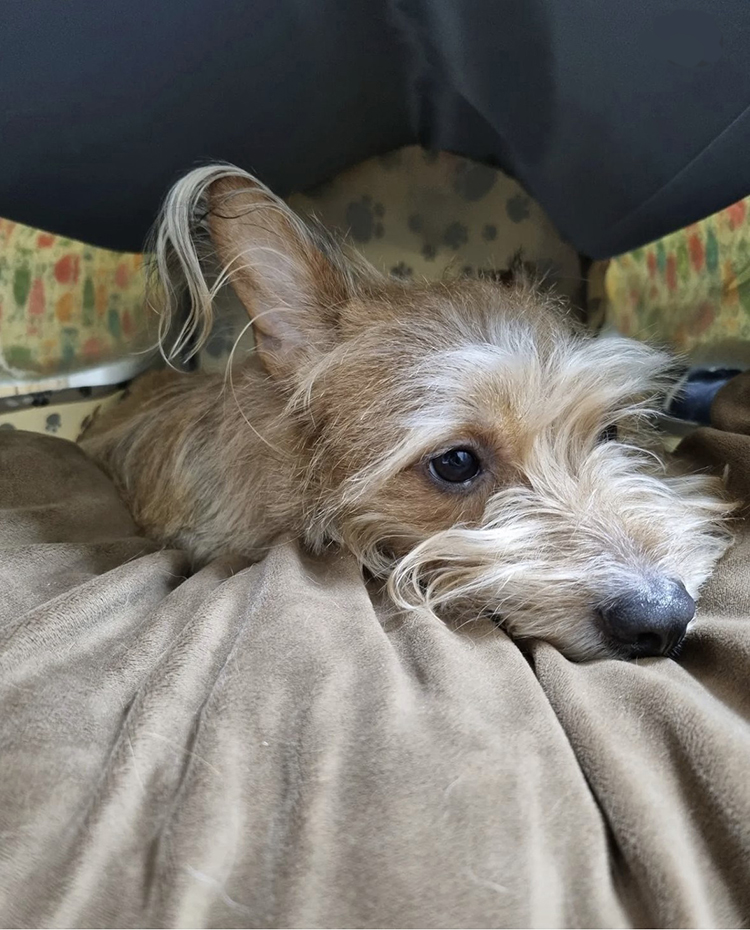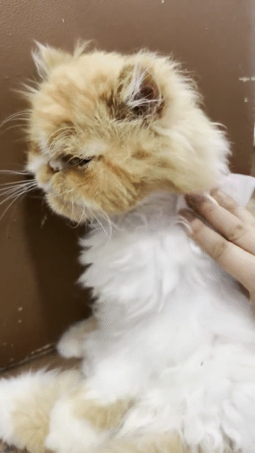 미용 도구에 티슈로 향을 바릅니다. 혹은 미용 도구를 익숙하게 하는 훈련에서 펫 레미디를 바르고 진행하면 더더욱 좋습니다.