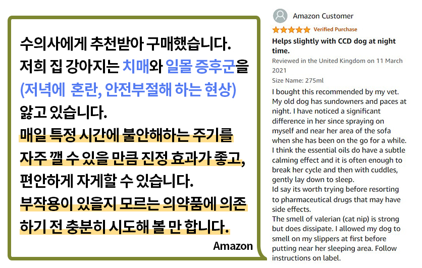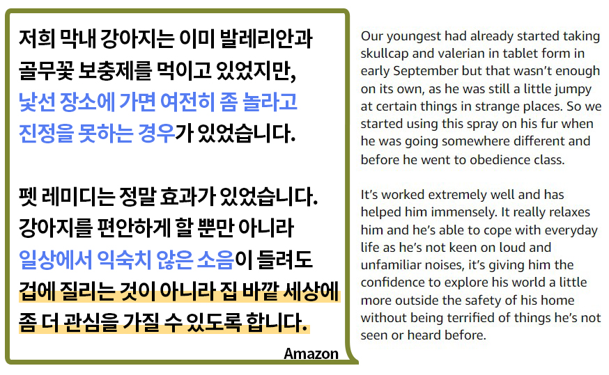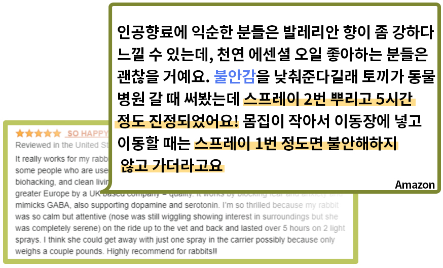 펫 레미디 같은 경우, ADHD가 있어 평소에 관심을 가지고 있던 도파민, GABA등을 활성화하는 데에 도움을 준다는 이야기를 듣고 관심을 가지게 되었습니다. 잠을 자기 어렵거나 업무 스트레스 때문에 불안감이 올 때 직접 사용도 하면서 스트레스 해소에 도움을 받기도 했습니다.