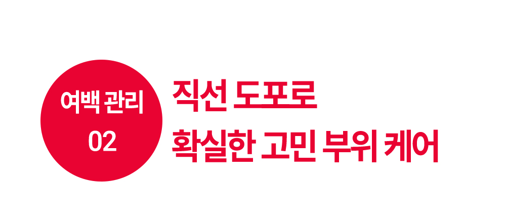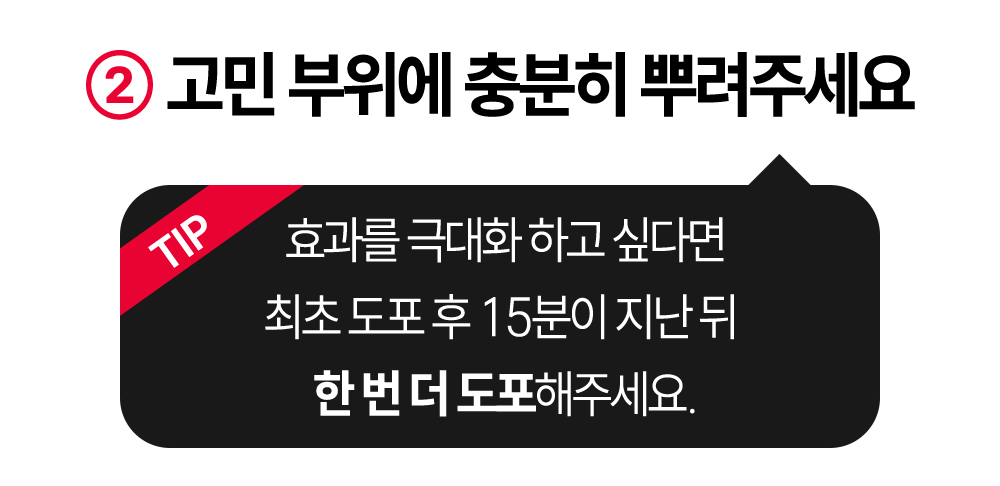 직선 타입 분사 방식으로, 고민 부위에만 집중 도포가 가능합니다.