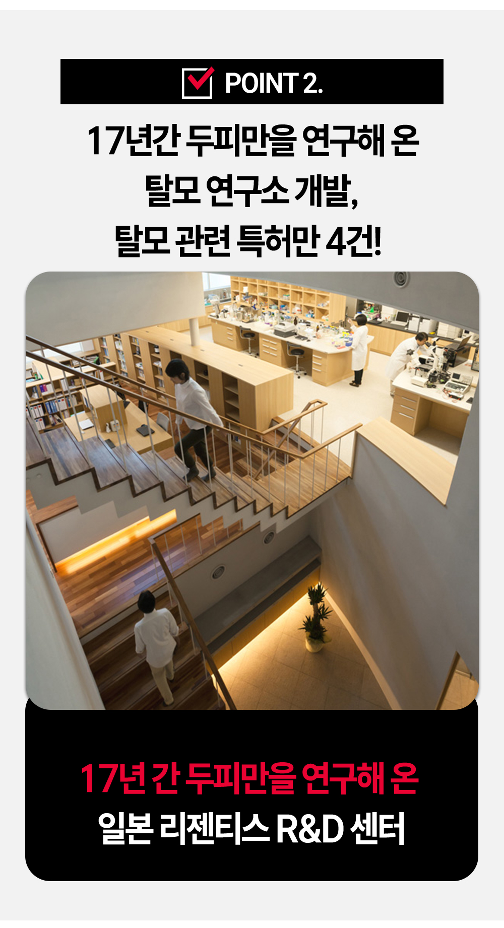17년 연구 기간동안 축적된 방대한 탈모 연구 데이터와 독자 성분을 바탕으로 일본 탈모 연구 선도 기업으로 자리매김 하고 있습니다.