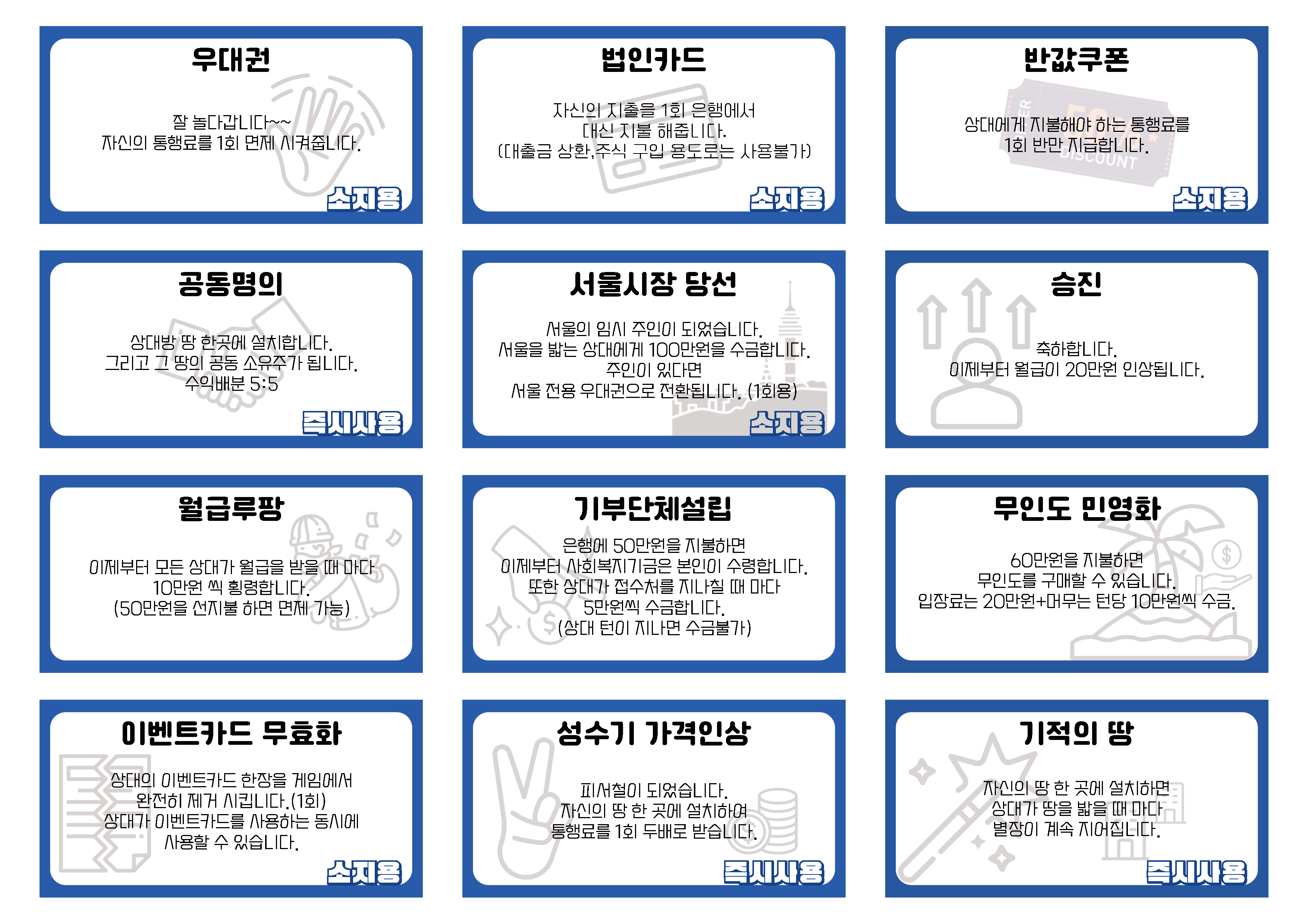 <이벤트카드> 버전에서는 과감하게 1,000원 5,000원권 지폐를 사용하지 않습니다.