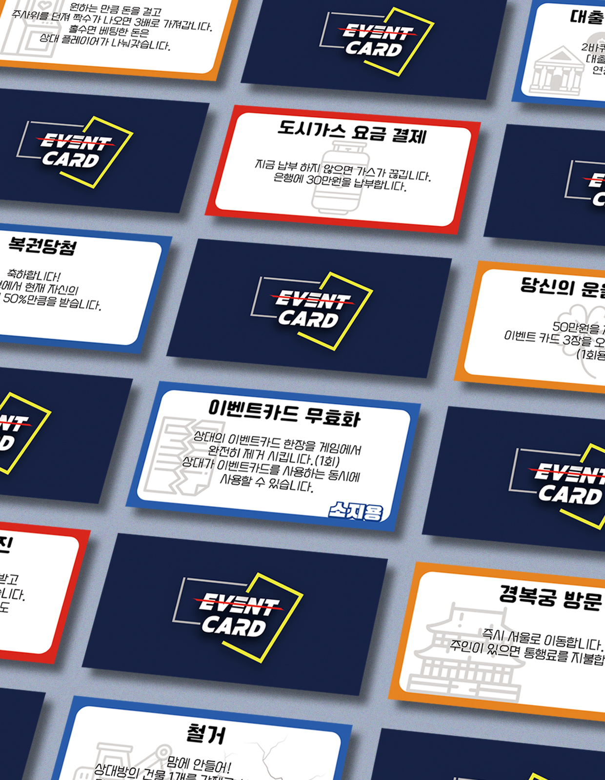 <이벤트카드>에서만 볼 수 있는 창의적이고 기발한 카드들로 구성됩니다.