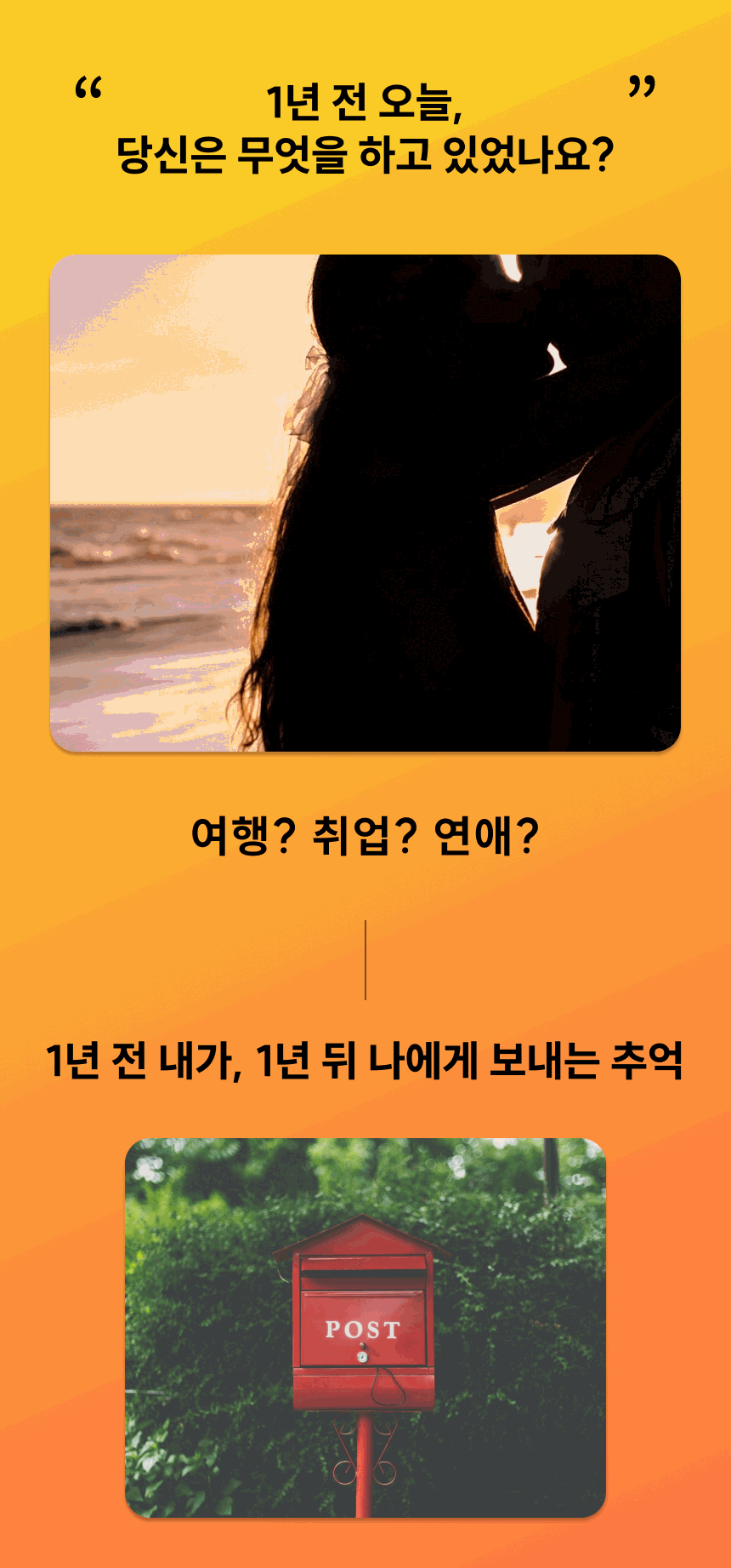 1年後の自分に届く写真レター企画。自分や大切な人と一緒に思い出を刻みましょう。