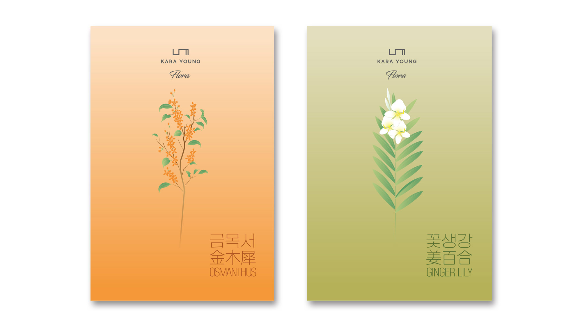 # 4. 금목서, 꽃생강이 그려진 엽서 2종