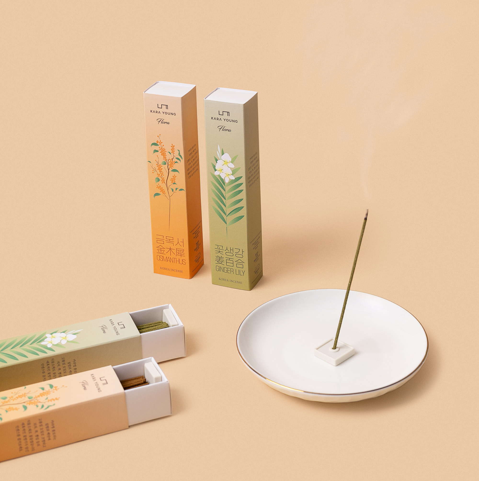 # 1. 금목서, 꽃생강 인센스 2종 + 포장 패키지