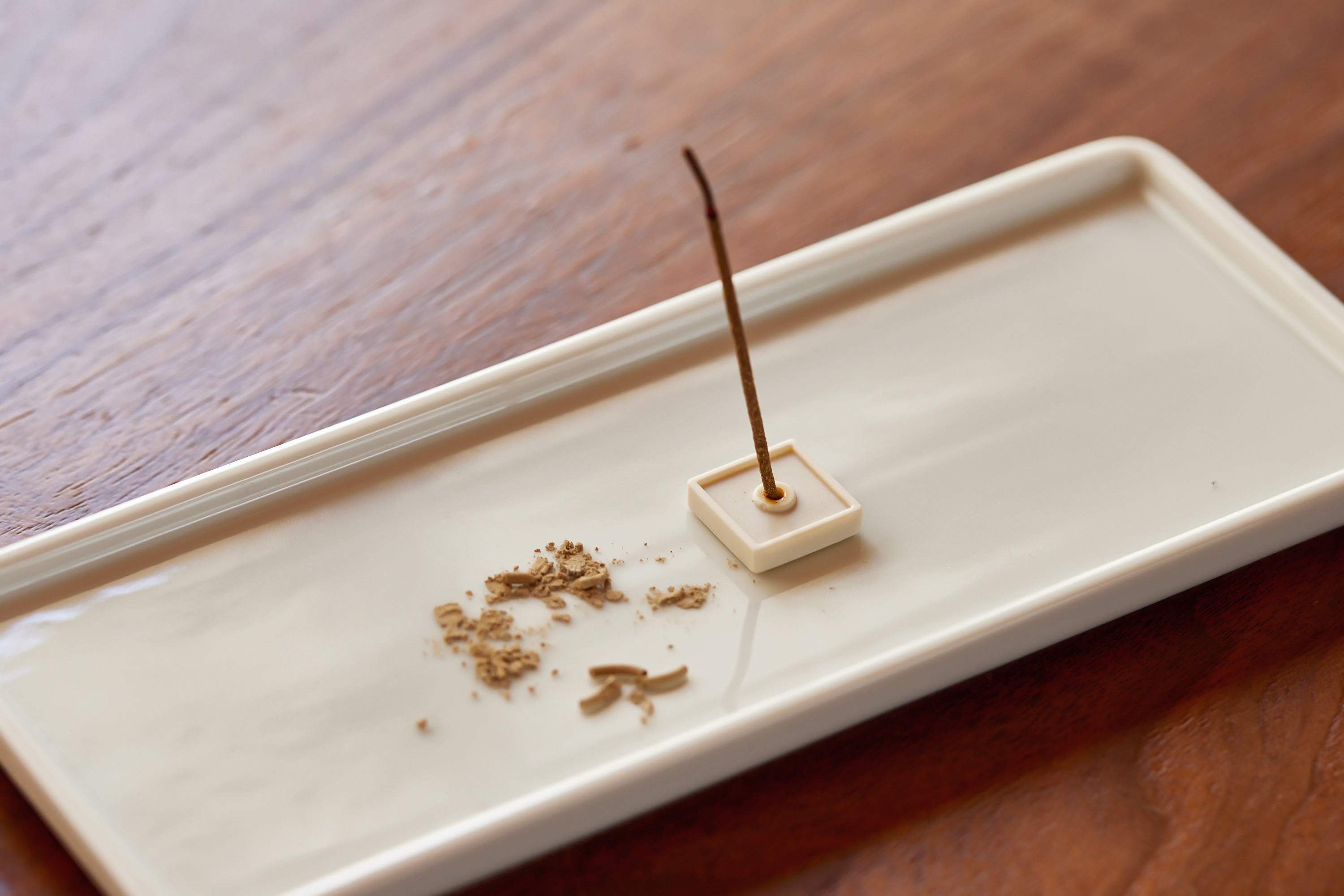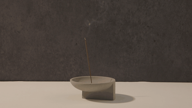 Step2. 접시, 향로 등의 불연성 소재 받침 위에 향꽂이를 올린 후, 인센스를 꽂습니다.