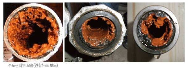 노후 된 수도관을 지나 흘러 들어온 수돗물은 녹물과 이물질로 더러워져 있습니다.
