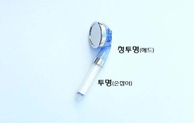 # 손잡이는 필터 변화를 볼 수 있게 투명 , 헤드는 깨끗한 물과 같이 청투명