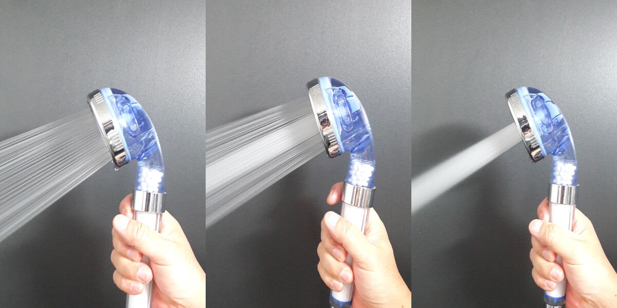 헤드 측면에 있는 레버를 위,아래로 누르시면 3가지로 분사가 됩니다.