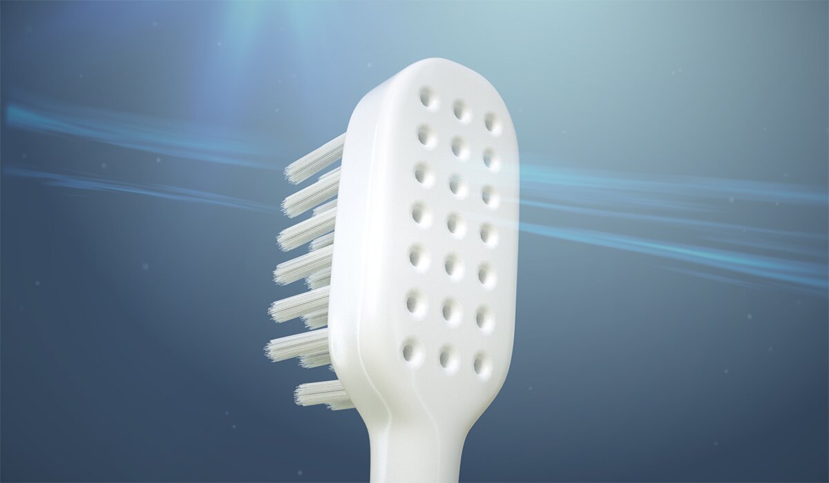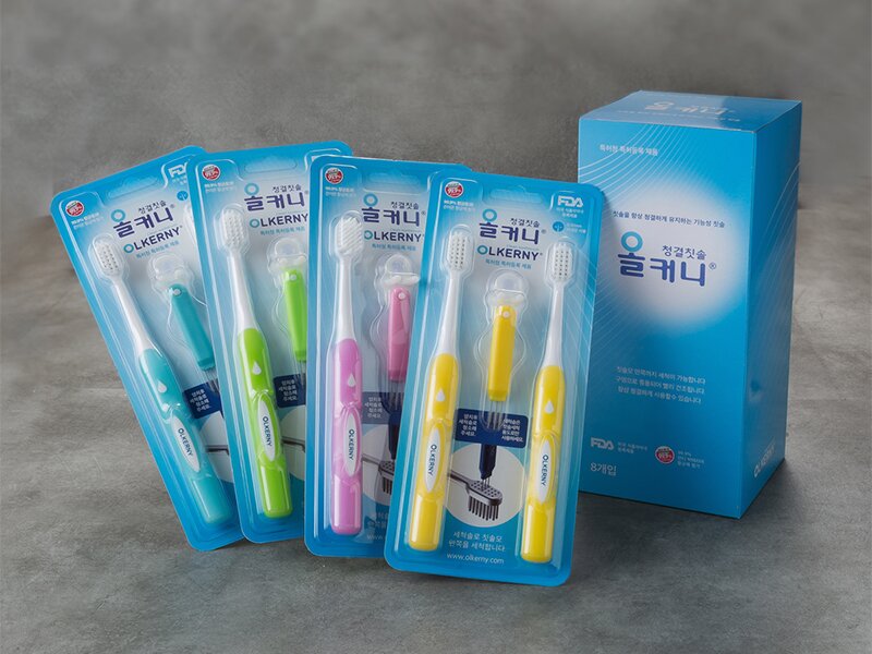 칫솔모 사이에 구멍이 있어서 이물질을 제거할 수 있고 통풍으로 빨리 건조되어 늘 청결함을 유지하는 신개념 특허칫솔 입니다.