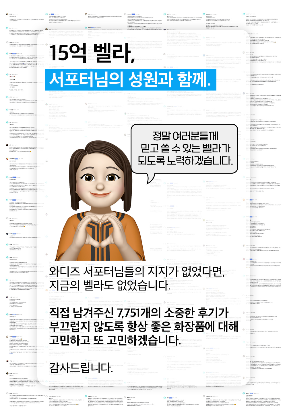 벨라를 믿고 선택 해주셔서 정말 감사드립니다. 서포터님들의 피부가, 벨라의 제품과 함께하는 하루의 시작이 행복하시길 바라며. 건강한 아름다움을 응원하겠습니다.