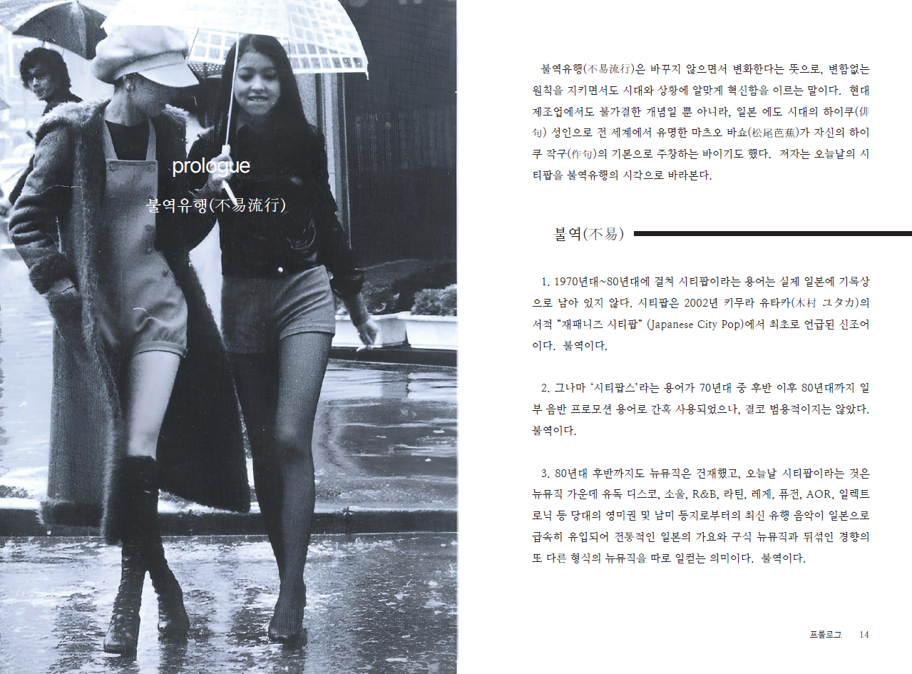 이 시점에서 시티팝을 중심으로 현대의 일본사회와 문화사조를 정확하게 정리해 보는 것은 문화사적으로 매우 의미 있는 프로젝트입니다.
