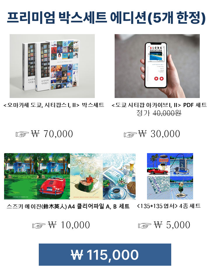 한국인을 위한 궁극의 일본 시티팝 가이드 북 1, 2권 세트와 인터랙티브 전자책 등의 선물이 와디즈 한정으로 배포