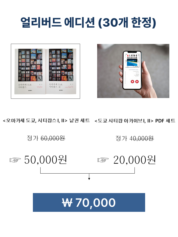 시티팝은 70~80년대 일본 도시 풍경을 그려낸 청각적 캔버스이고  시티팝 멜로디와 비트 속에는 시대를 초월한 예술적 감각이 담겨 있습니다.   당대의 예술, 도시, 그리고 시대의 조화.  70~80년대 일본 시티팝의 예술적 유산을 1, 2권 (박스세트)에 담았습니다.