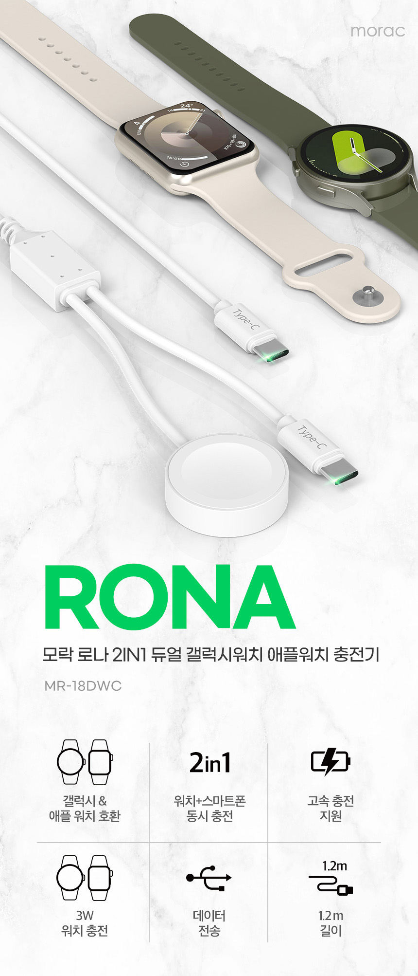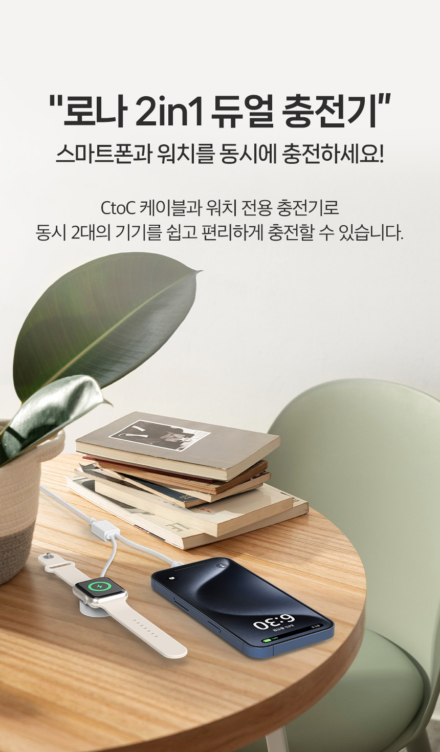 ギャラクシーウォッチ・アップルウォッチ問わず、スマホも一緒に充電可能!ロナの2in1デュアル充電器でスマートな毎日を。
