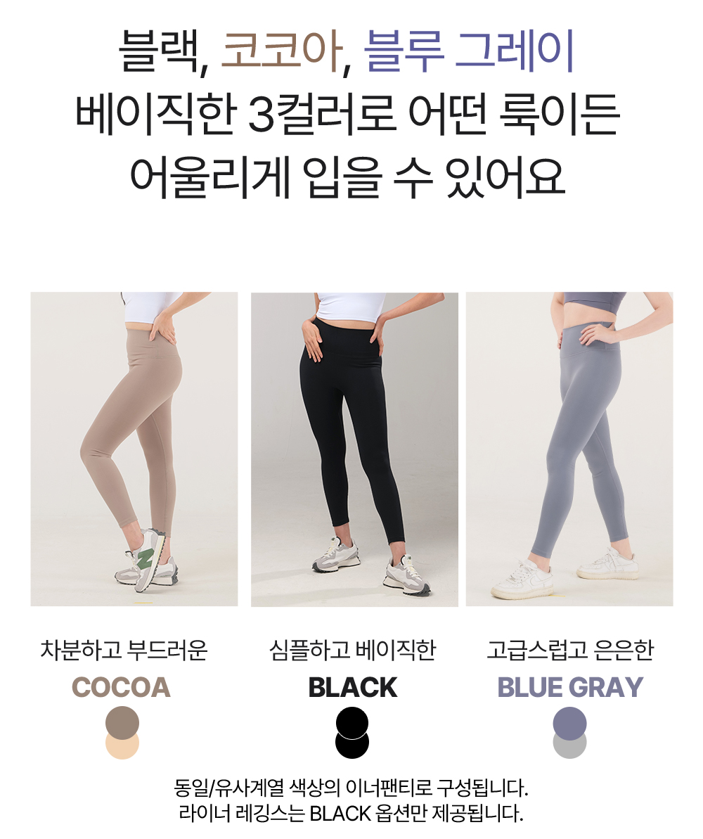 팬티 없이 단독으로 입을수 있어 간편함과 편한 착용감을 자랑하는 데일리 레깅스입니다. 1.JPG