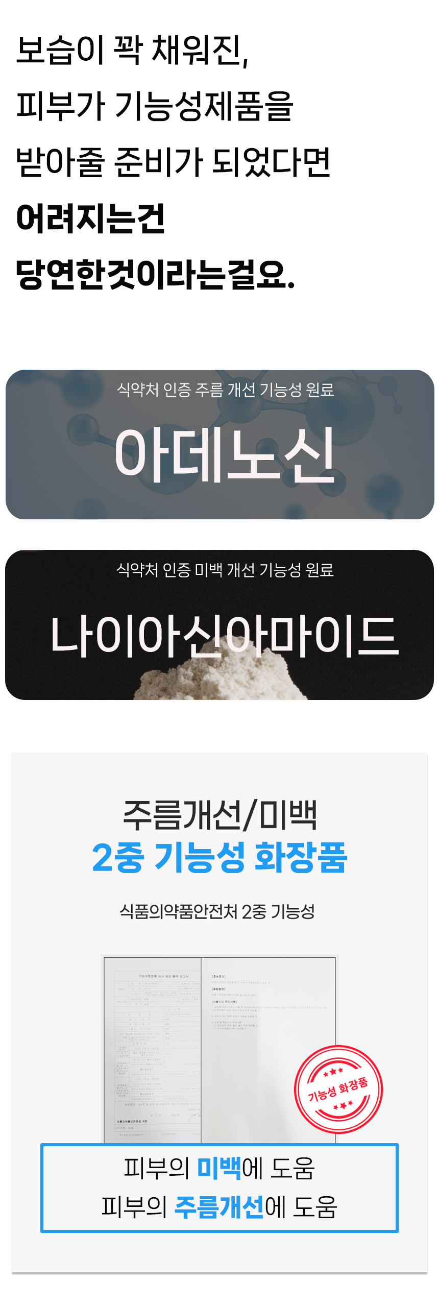 따라서 보습,미백,주름관리까지 아우르는 복합케어는 선택이 아닌 필수 입니다.