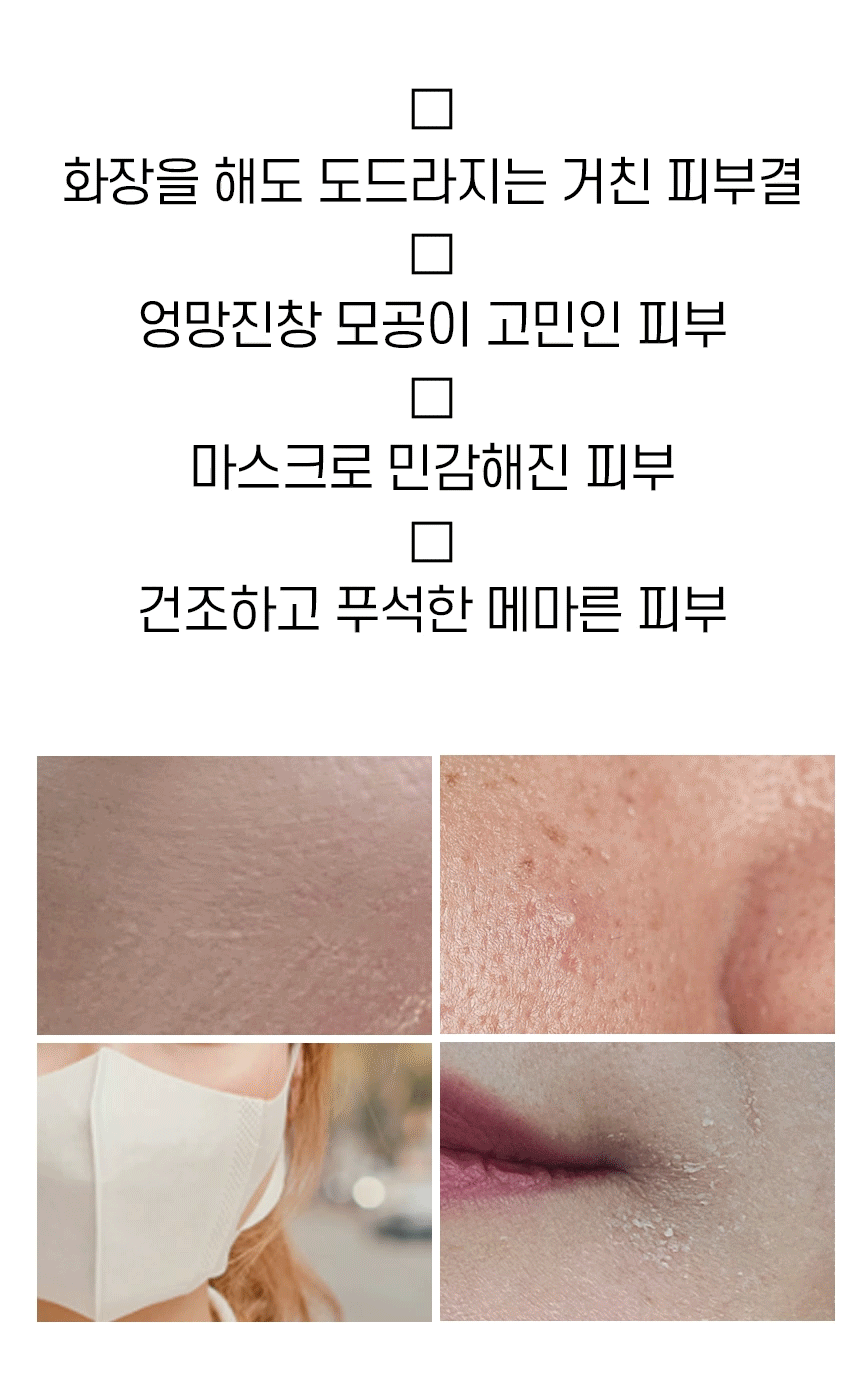 관리하는 분이라면 "보습에 좋은, 모공에 좋은, 주름에 좋은, 미백에 좋은 화장품 이미 사용하고 있는데요?"라고 말씀 하실 꺼예요. 하지만 피부는 여전히 제자리 걸음이거나 더 나빠진 경험, 한번쯤은 해보셨을 거에요.