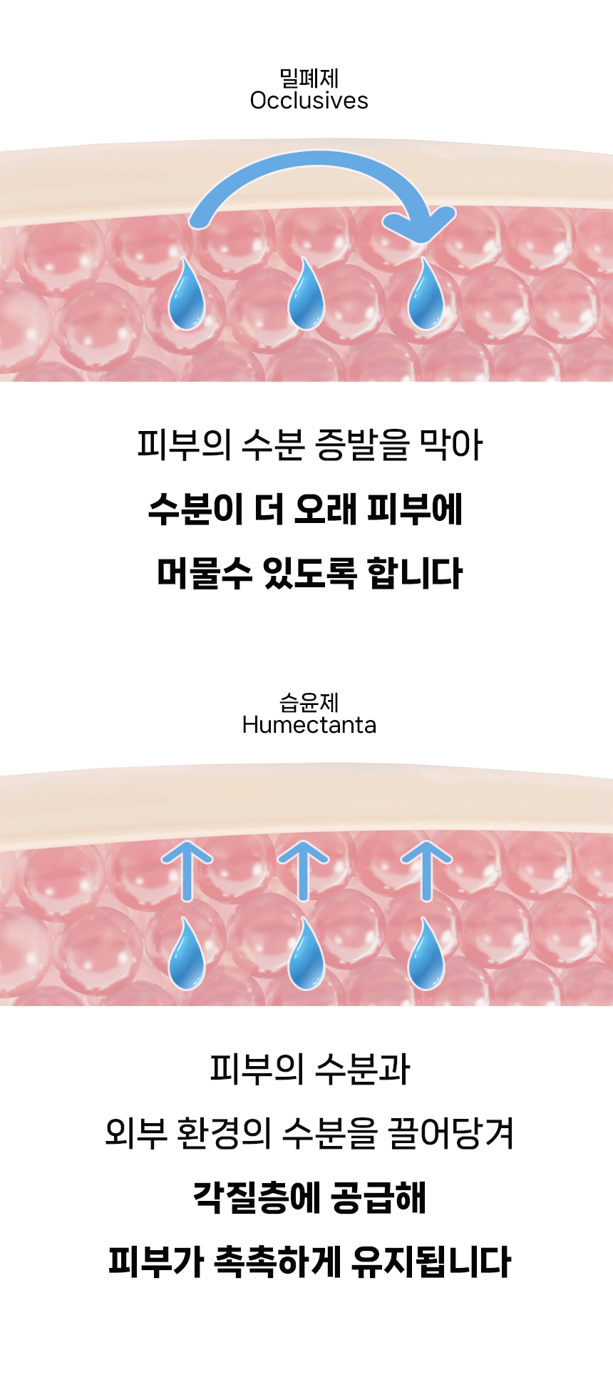 근데 변화된 피부는 보습을 먼저 채워줘야 하거든요. 그리고 화장품을 많이 사용한다고 해서 보습이 잘 채워지는건 아니니까요. 그래서 보습의 가장 기초 습윤제와 밀폐제 확인이 필수인 이유입니다.