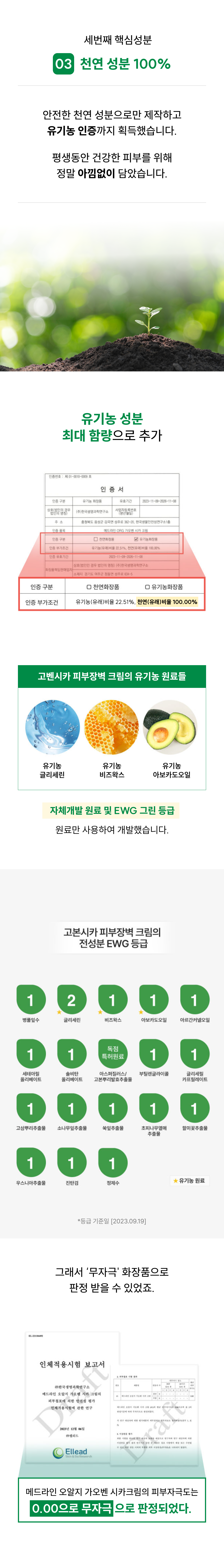 앞으로도 피부에 안전하고 효과적인 천연+유기농+기능성 화장품의 개발과 연구 및 생산에 최선을 다하겠습니다.