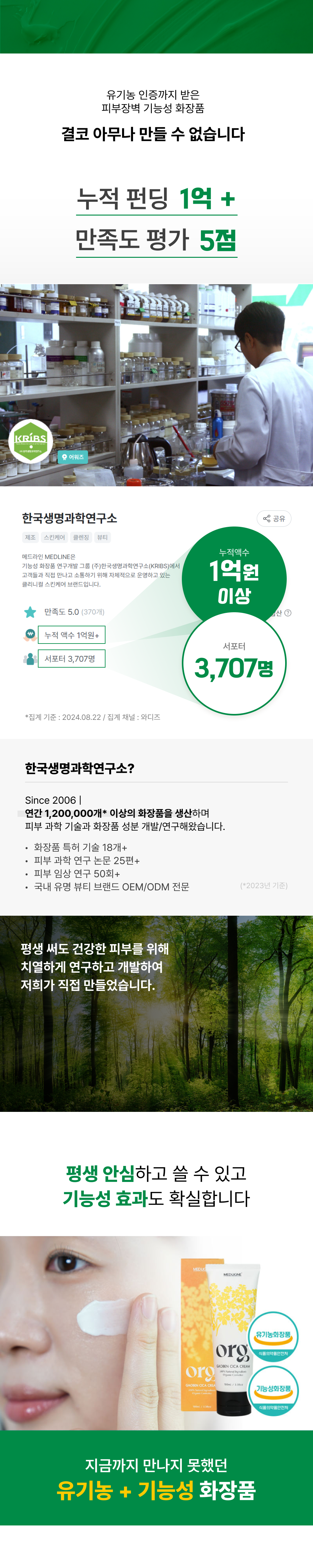 그 중에서도 이번 org [고본시카 피부장벽 크림]은 가장 혁신적인 기술과 성분들을 사용하였기에, 와디즈에서 가장 먼저 공개합니다.