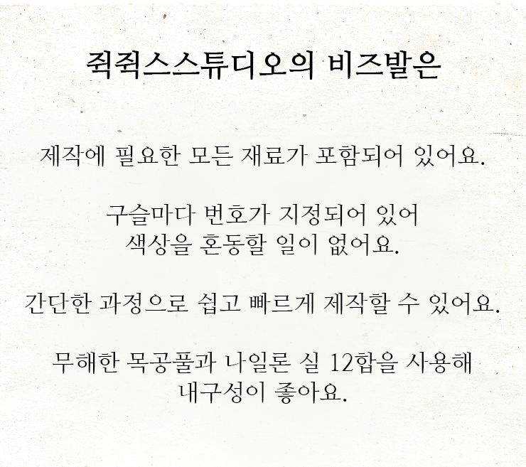 ジュクジュクススタジオだけの美学で再解釈した韓国風ビーズバル。簡単かつスピーディに完成し、誰でも気軽に自分だけの空間を彩れます。