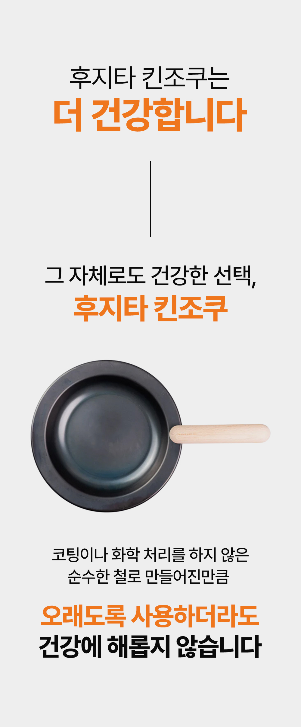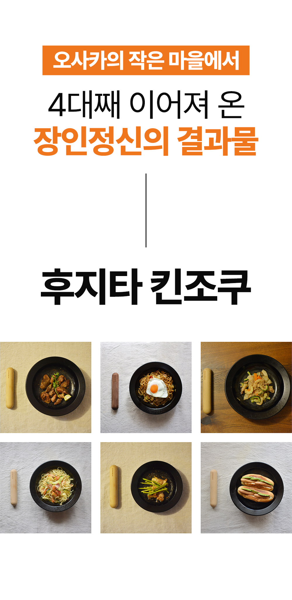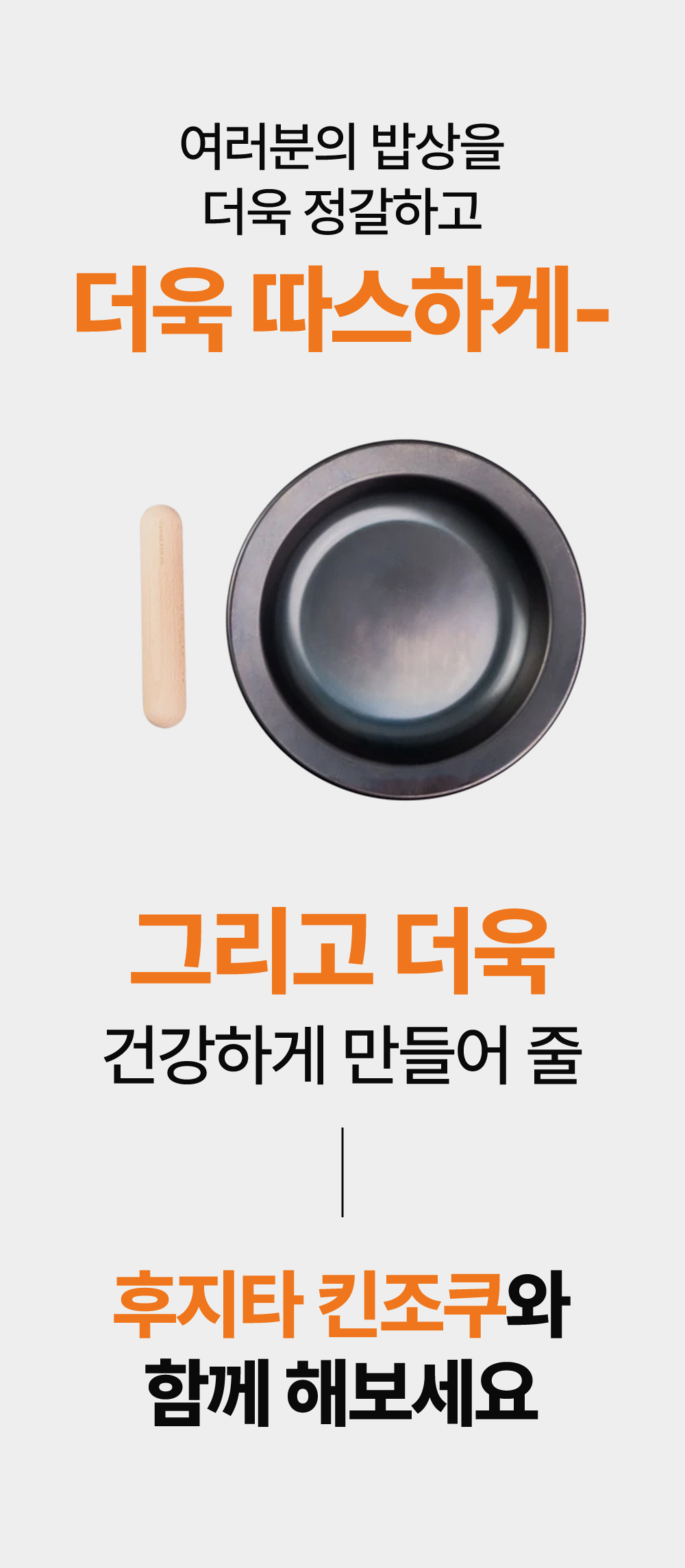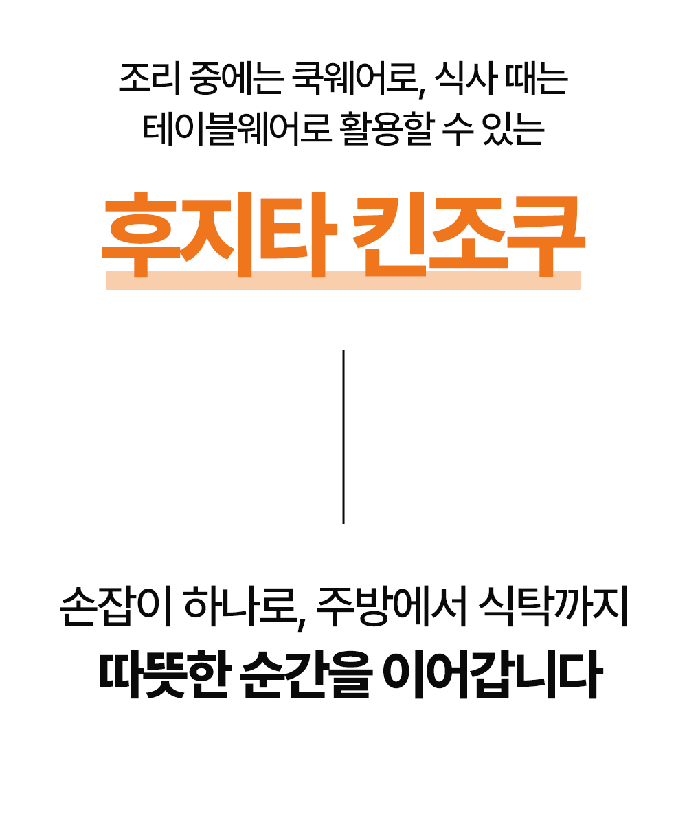 어머니의 정성이 깃든 그 따스한 밥상처럼, 후지타 킨조쿠 후라이팬은 여러분의 주방에서 새로운 요리의 가능성을 열어줍니다. 어떤 요리를 하든 그 시작은 후지타 킨조쿠와 함께 하세요. 정갈하게, 따스하게, 그리고 건강하게.