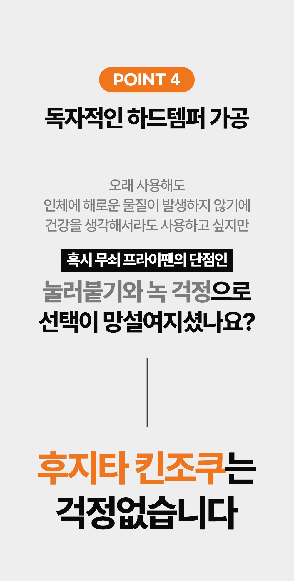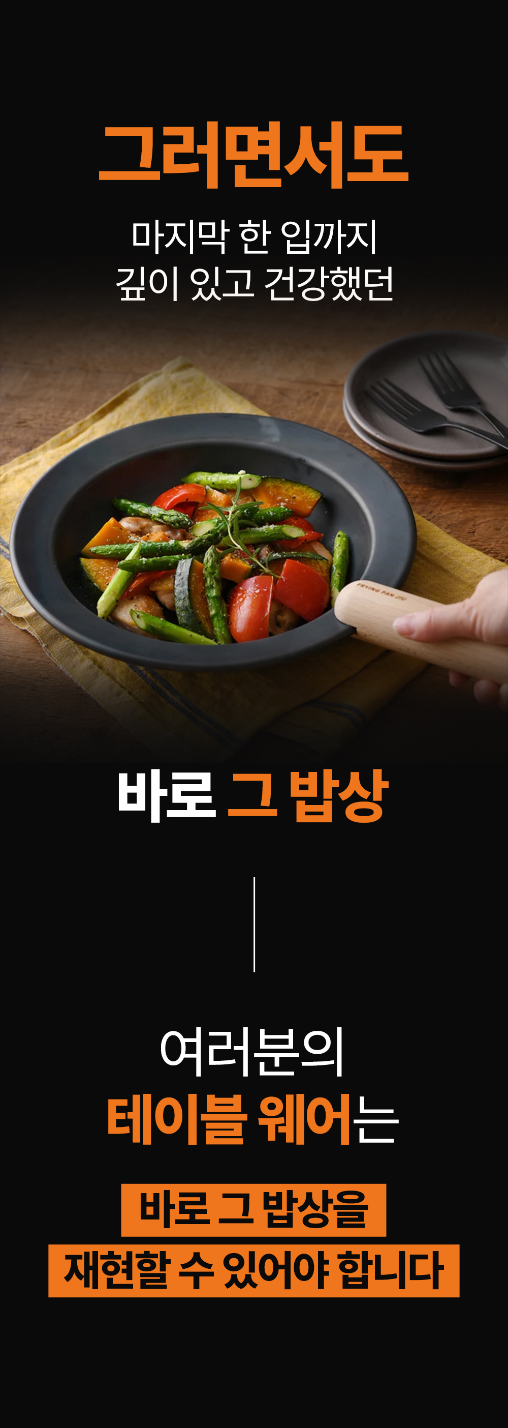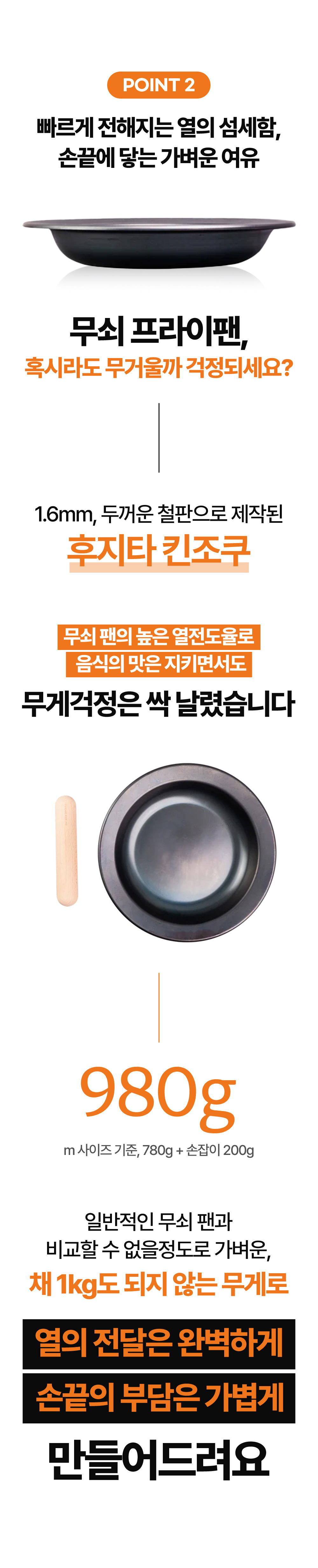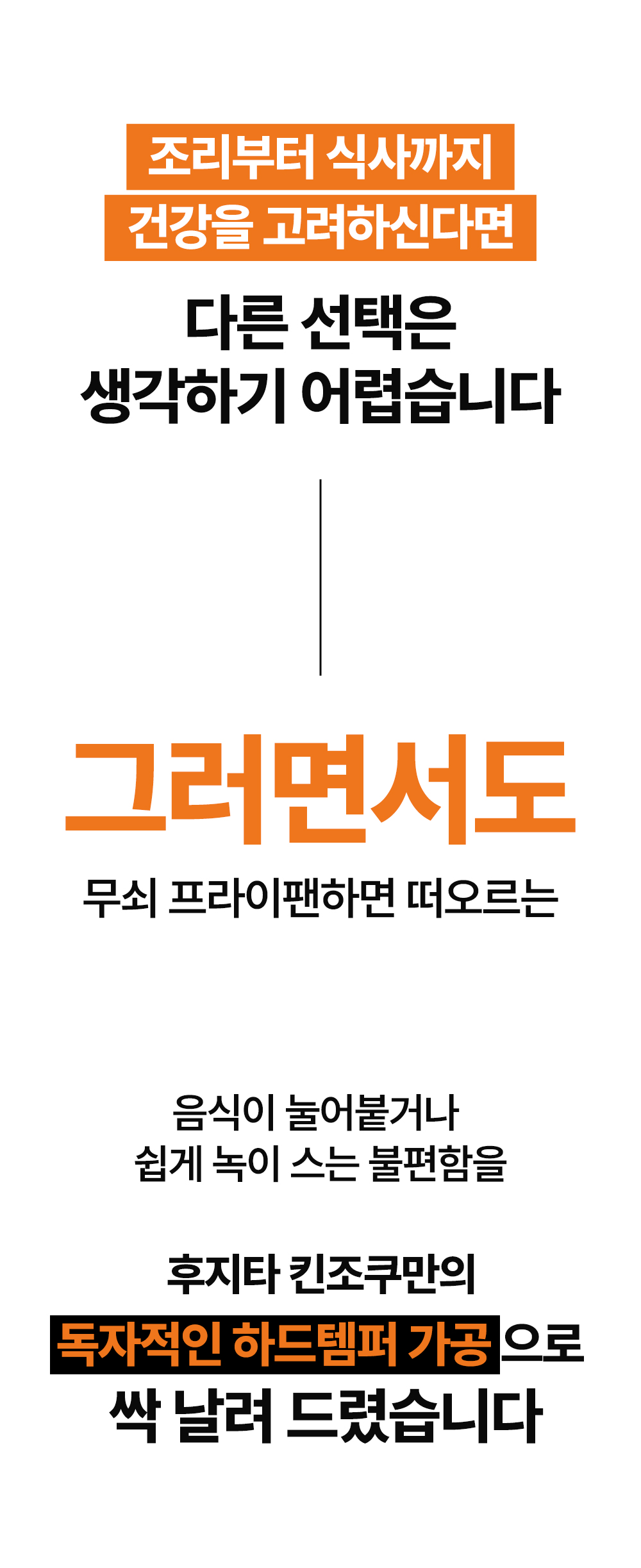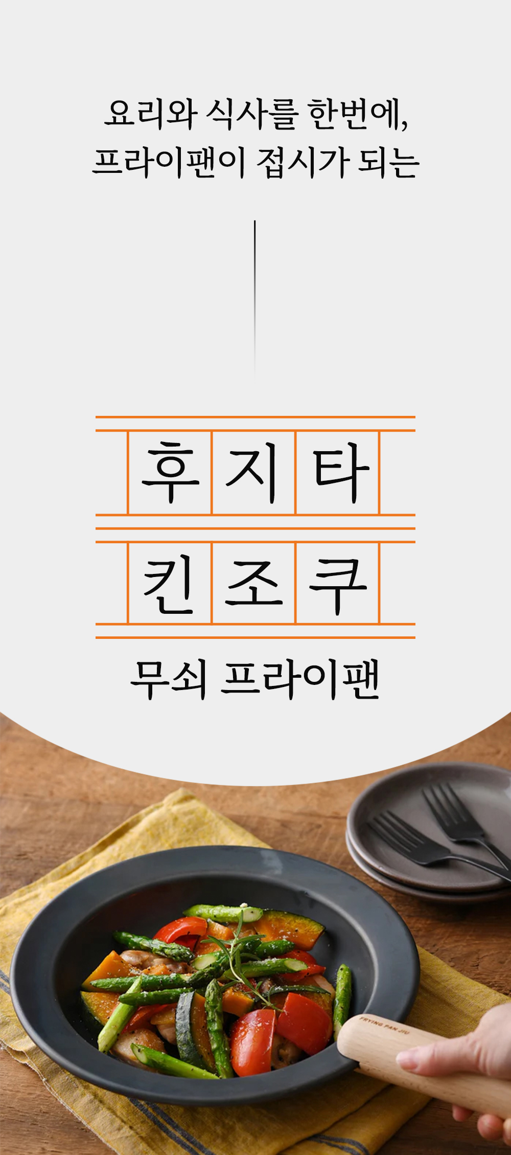 어머니의 정성이 깃든 그 따스한 밥상처럼, 후지타 킨조쿠 후라이팬은 여러분의 주방에서 새로운 요리의 가능성을 열어줍니다. 어떤 요리를 하든 그 시작은 후지타 킨조쿠와 함께 하세요. 정갈하게, 따스하게, 그리고 건강하게.
