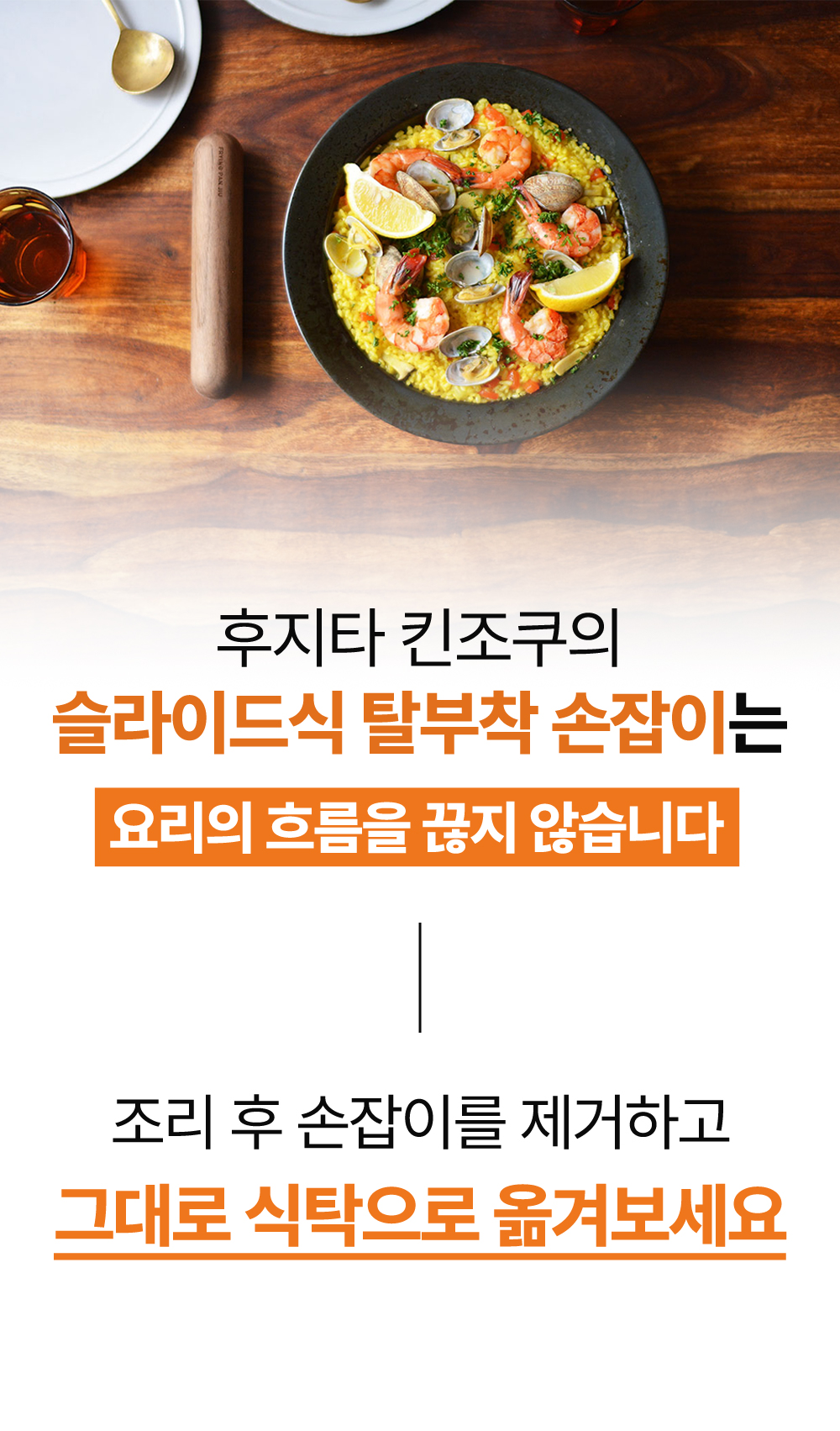 네, 슬라이드식 손잡이로 간편하게 탈부착이 가능하여 조리 후 바로 식탁으로 옮길 수 있습니다.
