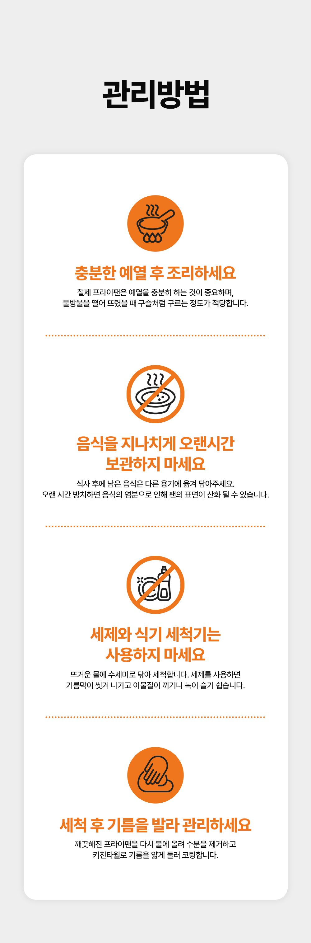 Q3. 후지타 킨조쿠 프라이팬은 어떻게 관리하나요?