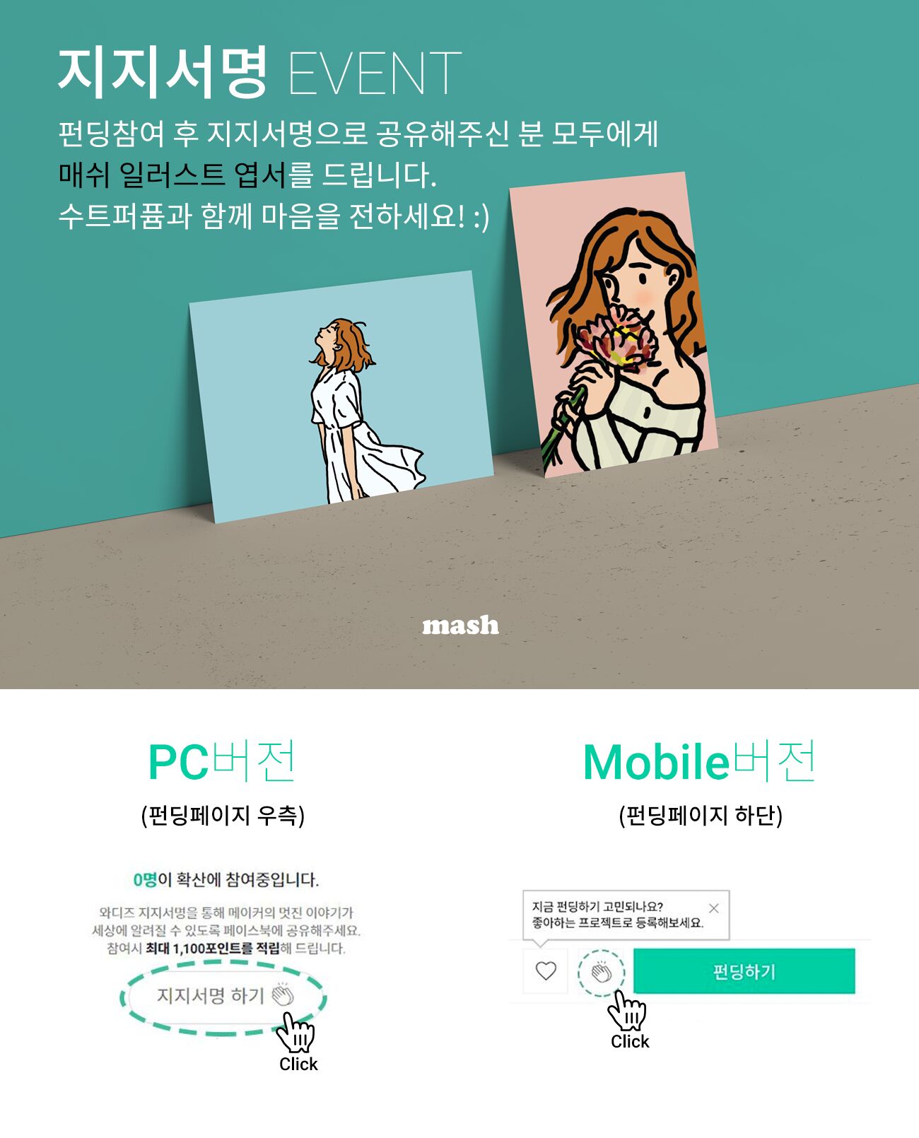 순차 배송 :1일 최대 발송 수량 100개 / 리워드 발송 관련 문의 (mash Korea) :1644 7601